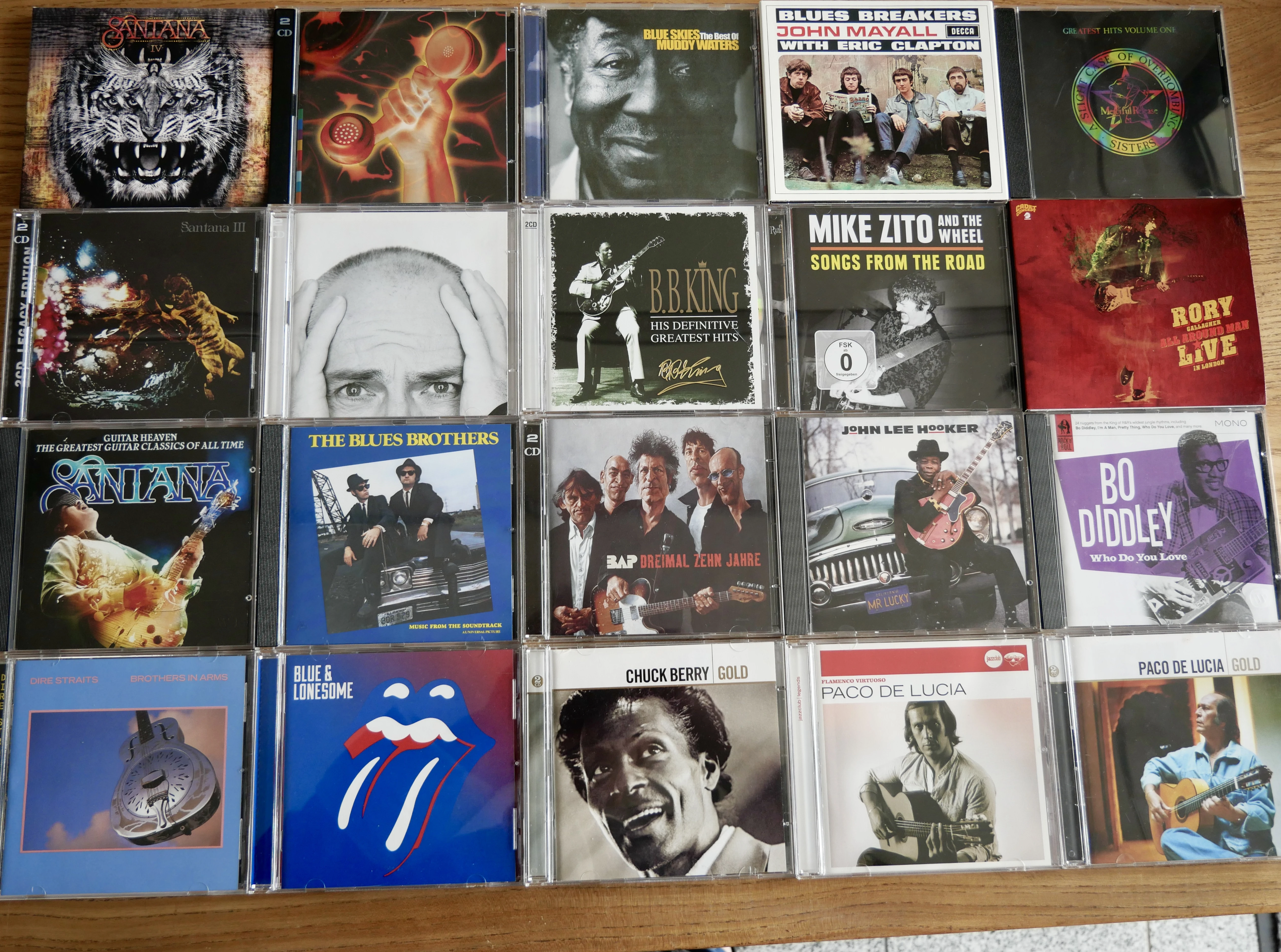 an. Hier die Namen der Künstler : Allman Brother Band (5) BAP ( 1 )- B.B.King (1) - Blues Brothers (1) - Chuck Berry (1) - Bo Didley (1) - Joe Bonamassa (7) - J.J. Cale (1) - Eric Clapton (6) - Dire Straits (1) - Fleetwood Mac (1) - Peter Gabriel (2) - Genesis (1) - -Rory Gallagher (1) - John Lee Hooker (1) - Paco de Lucia (2) - Pink Floyd (3) - Carlos Santana (2) - Rolling Stones ( 2) - Sisters of Mercy (1) -