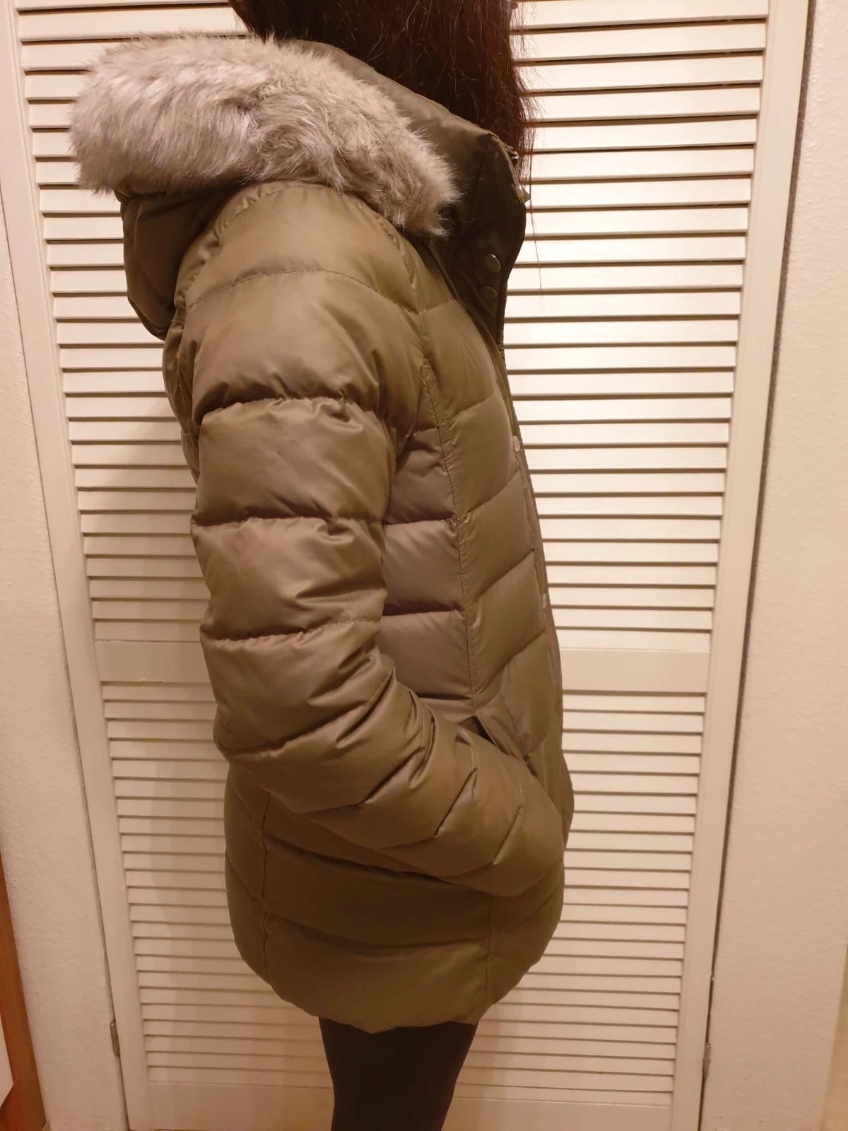 Schöne Tommy Hilfiger Daunenjacke, heile und gepflegt, Gr. 36, khaki, Kapuze mit Fake Fur Besatz.