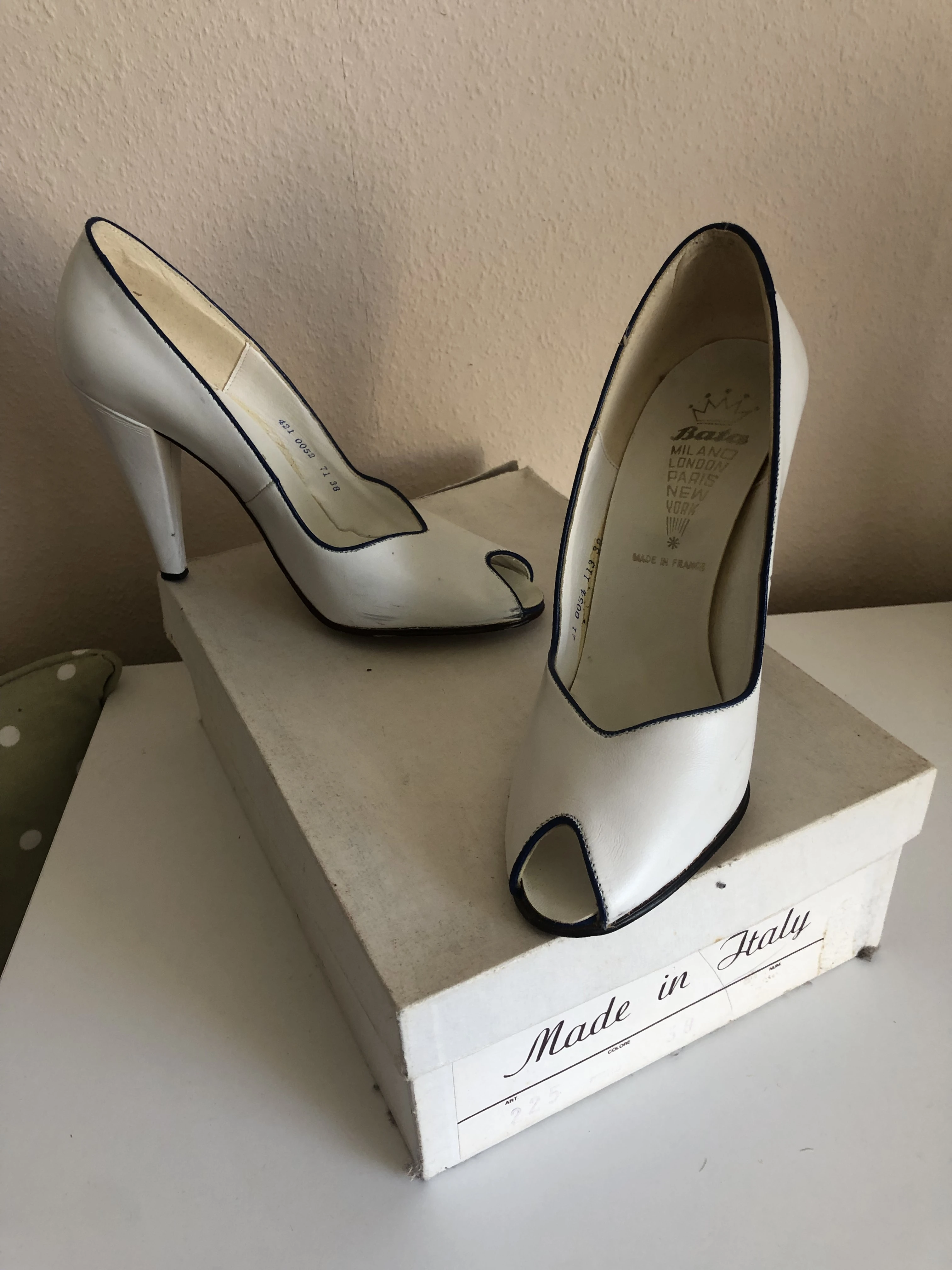 Elegant Hochzeit, Cocktail Schuhe im High-Heels Peep, Gr. 38, weiß, Absatzhöhe ca. 9,5 cm.