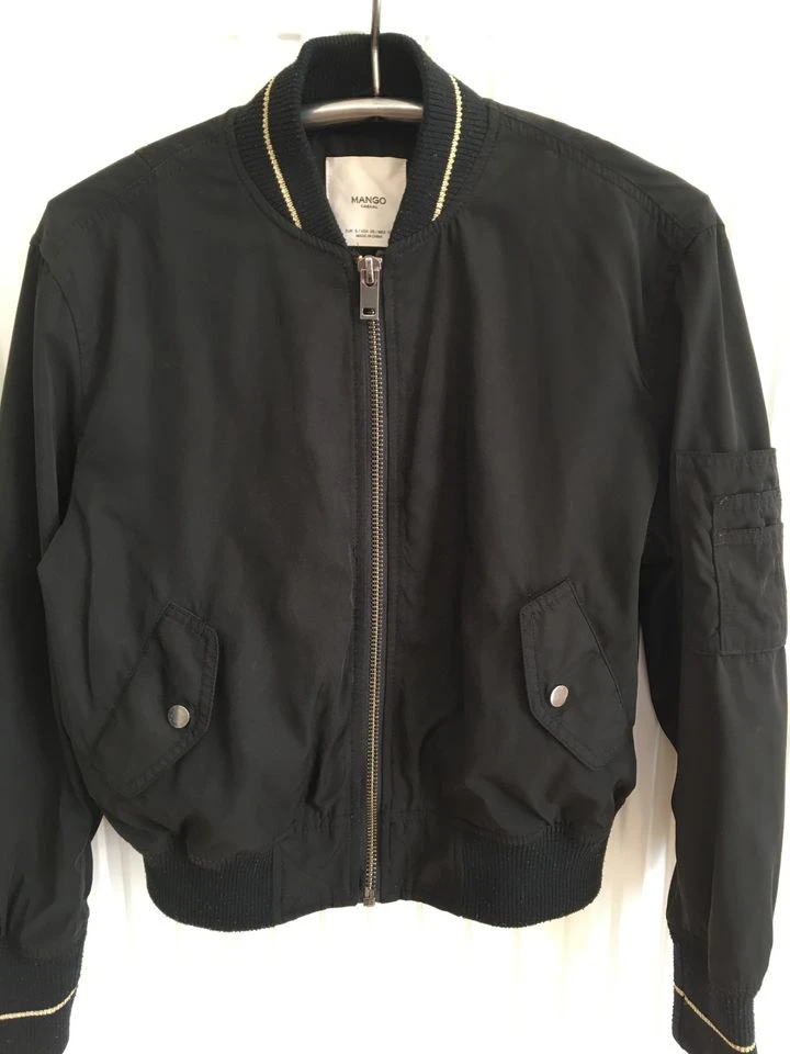 Ich verkaufe eine Jacke von Mango in der Gr. S in schwarz im "Bomberjacken-Stil" zu 7 EUR. Getragener, aber heiler Zustand.