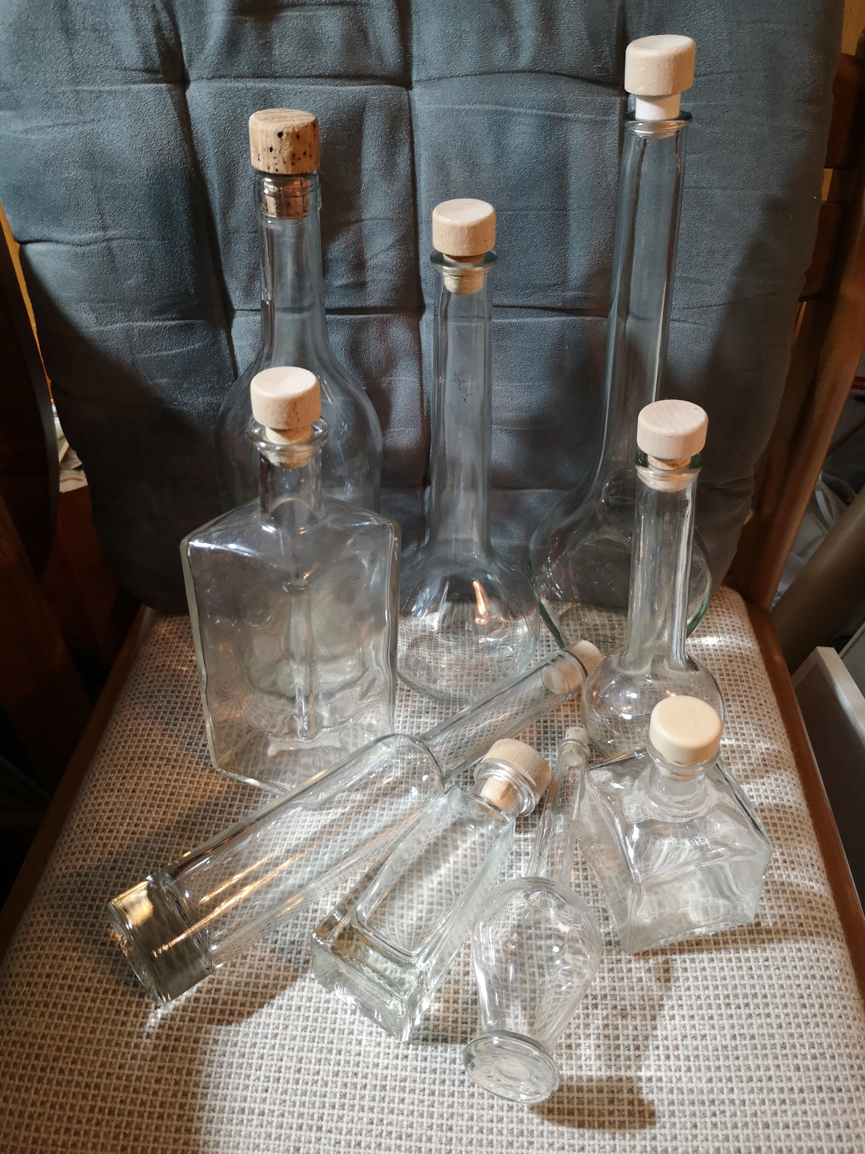 diverse Glasflaschen mit Korkstopfen