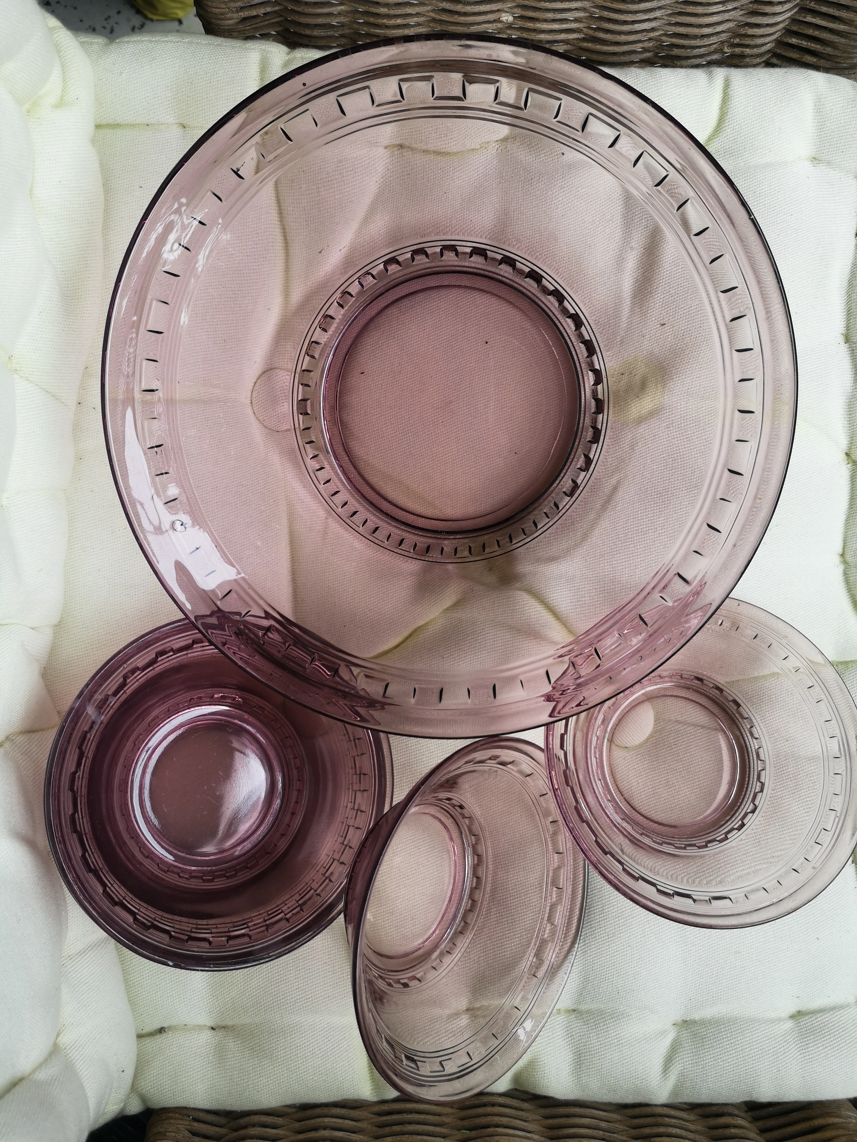 ich verkaufe eine hübsche Pressglassschüssel aus Rosalinglas mit geometrischem Muster, mit 6 passenden Schälchen – aus Omas Nachlass. Zustand für das Alter sehr gut, habe keine Macken gesehen. Siehe Bilder – 12 Euro VB oder fairer PV – NUR Abholung in der Neustadt.