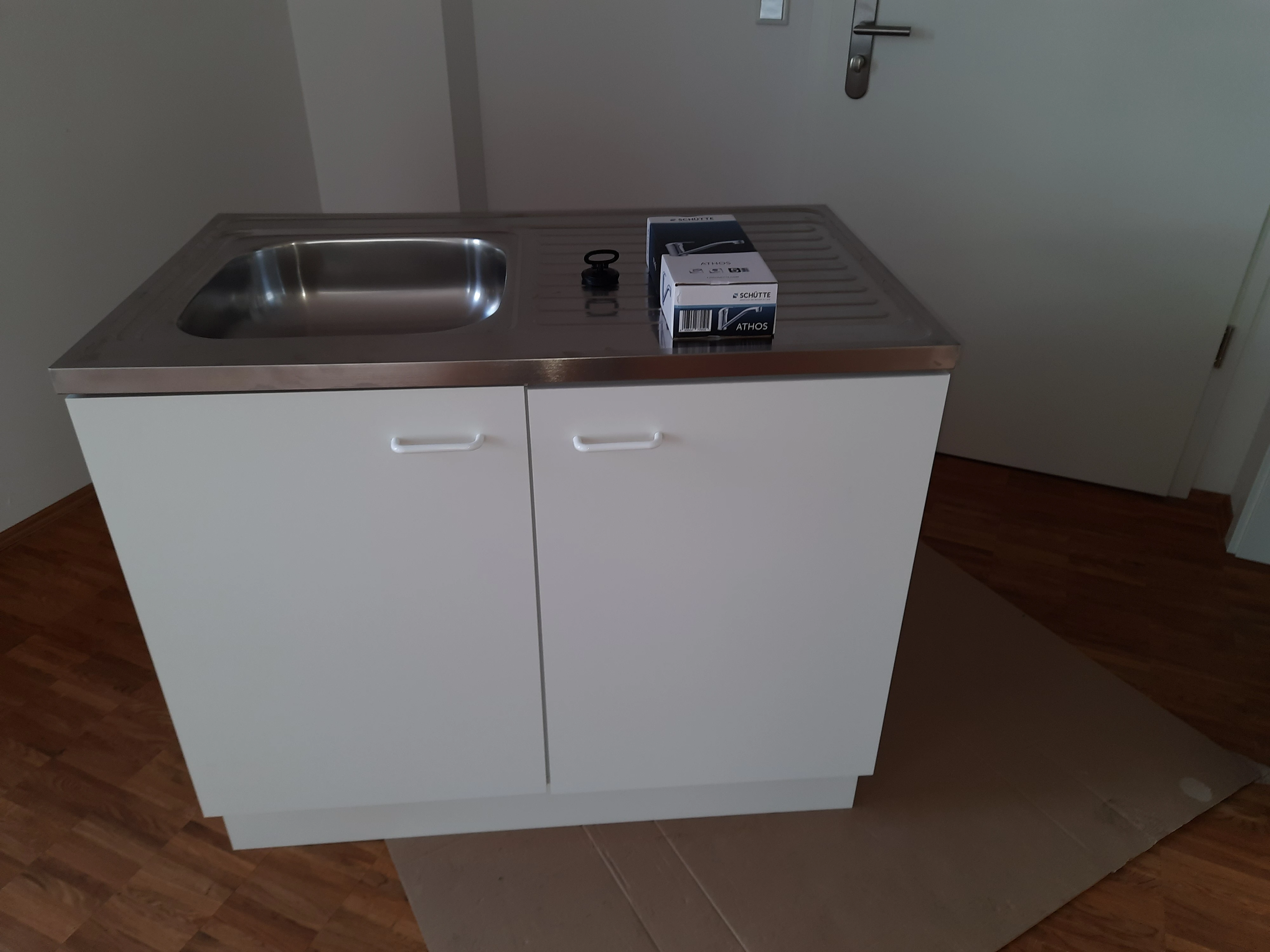 Hier verkaufe ich den neue Spuelenschrank weiss matt mit einem neuen wasser Armatur inklusive Abfluss Anschlüsse.