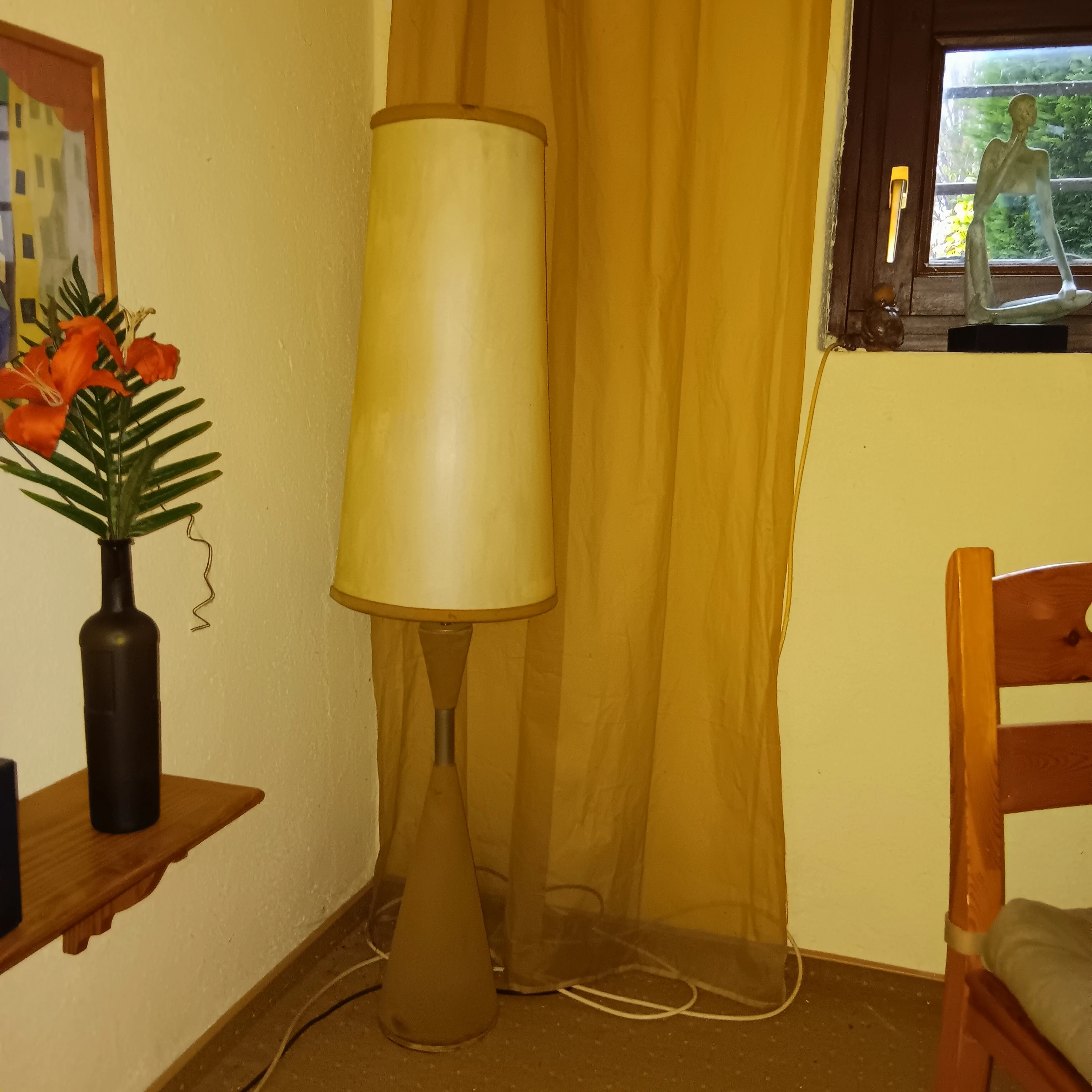 Dieses Unikat aus den 20er Jahren funktioniert technisch, braucht allerdings noch einen Schirm. Die Leuchte kostet 40,00 € und kann in Schwachhausen abgeholt werden.