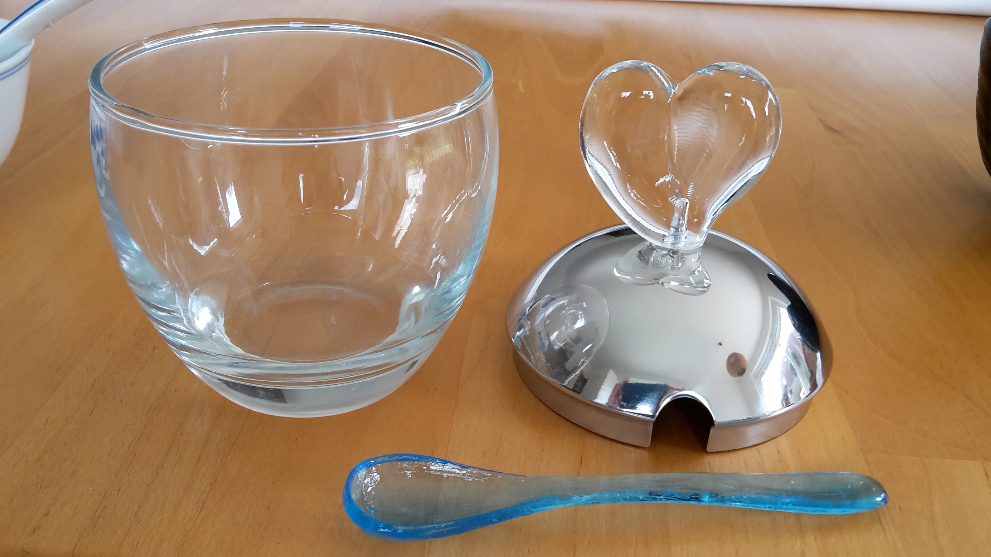 Gesamthöhe 16 cm mit Edelstahldeckel, Glasherz und Kunststofflöffel