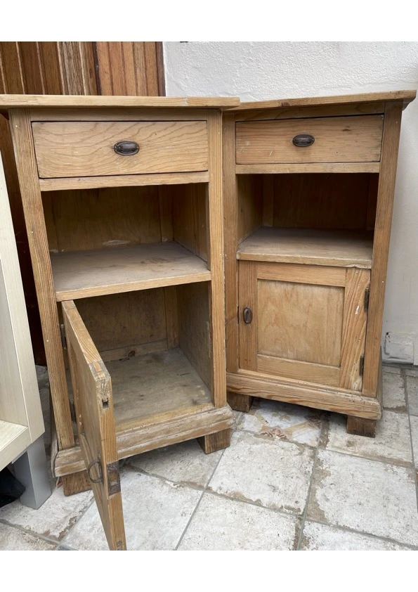 Verkaufe zwei alte Vollholznachtschränke, unbehandelt, mit Schublade oben, Fach in der Mitte und Tür unten. 76 hoch, 40 breit, 37 tief