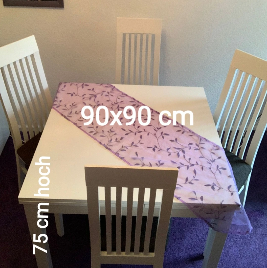 Verkaufe meinen weißen Esstisch mit vier passenden Stühlen im Landhausstil.