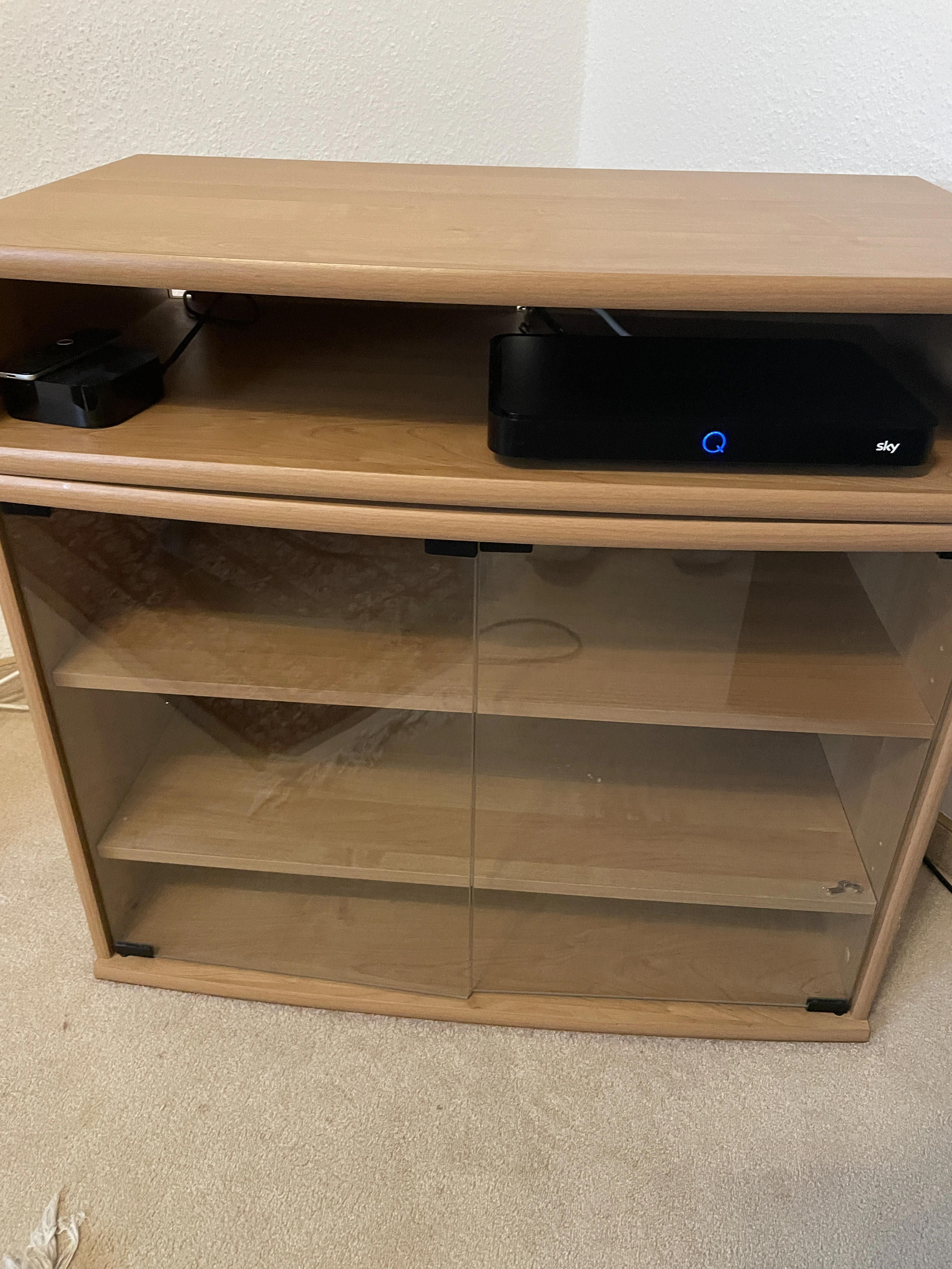 Verkaufe einen Fernsehnschrank Buche mit Glasscheiben für 20€ Tassimo Silber für 5€ Cafesimo nur ausgepackt für 20€