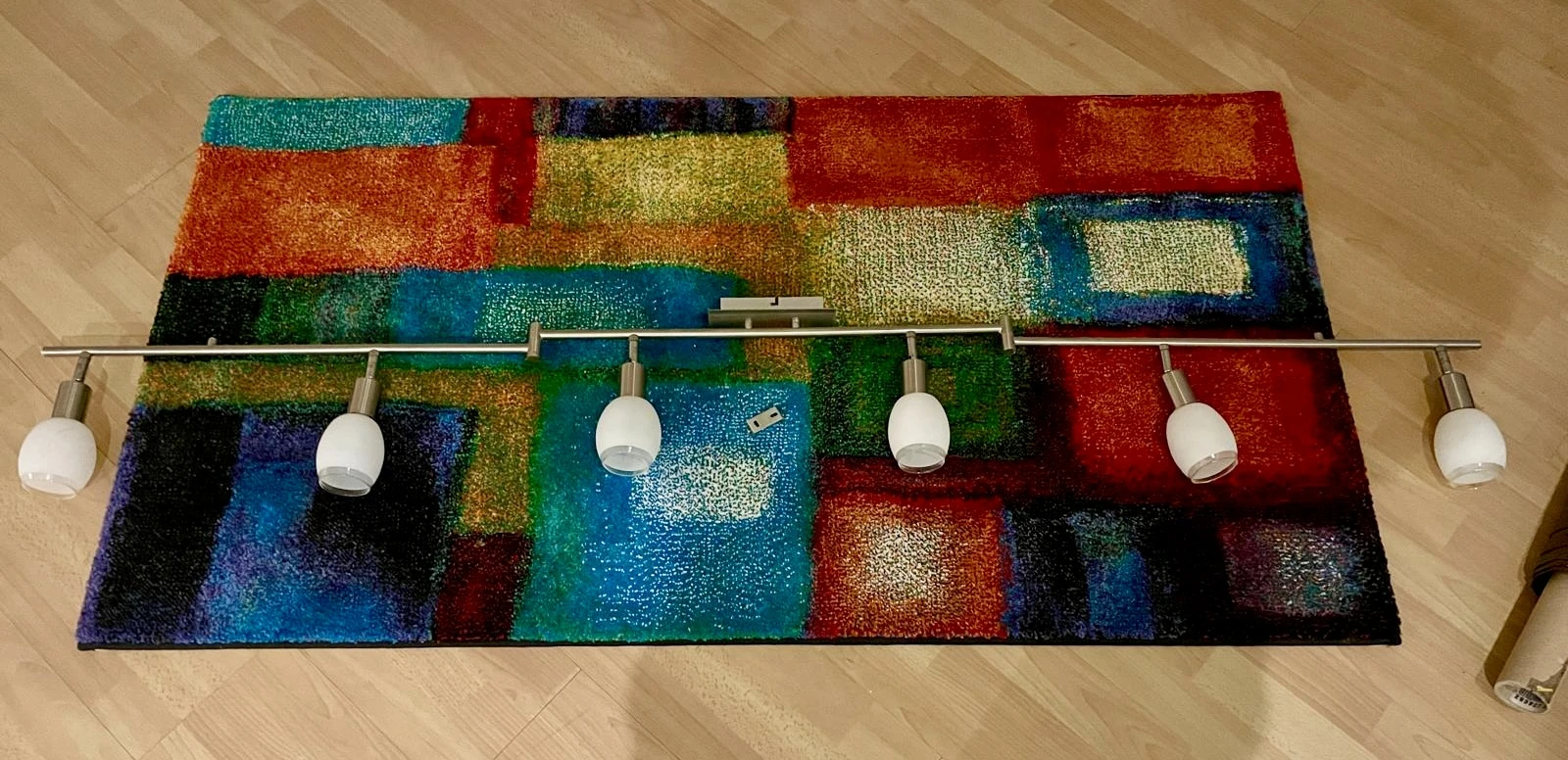Ich verkaufe hier unsere Esstischlampe da wir eine neue haben. Sie funktioniert einwandfrei und ist auch dimmbar. Wir haben das Haus meiner Schwiegermutter übernommen und nun ist die Lampe über. Sie funktioniert mit Halogenleuchtmittel. Mit ihren 1,80 Meter passt sie auch super über einen großen Esstisch.