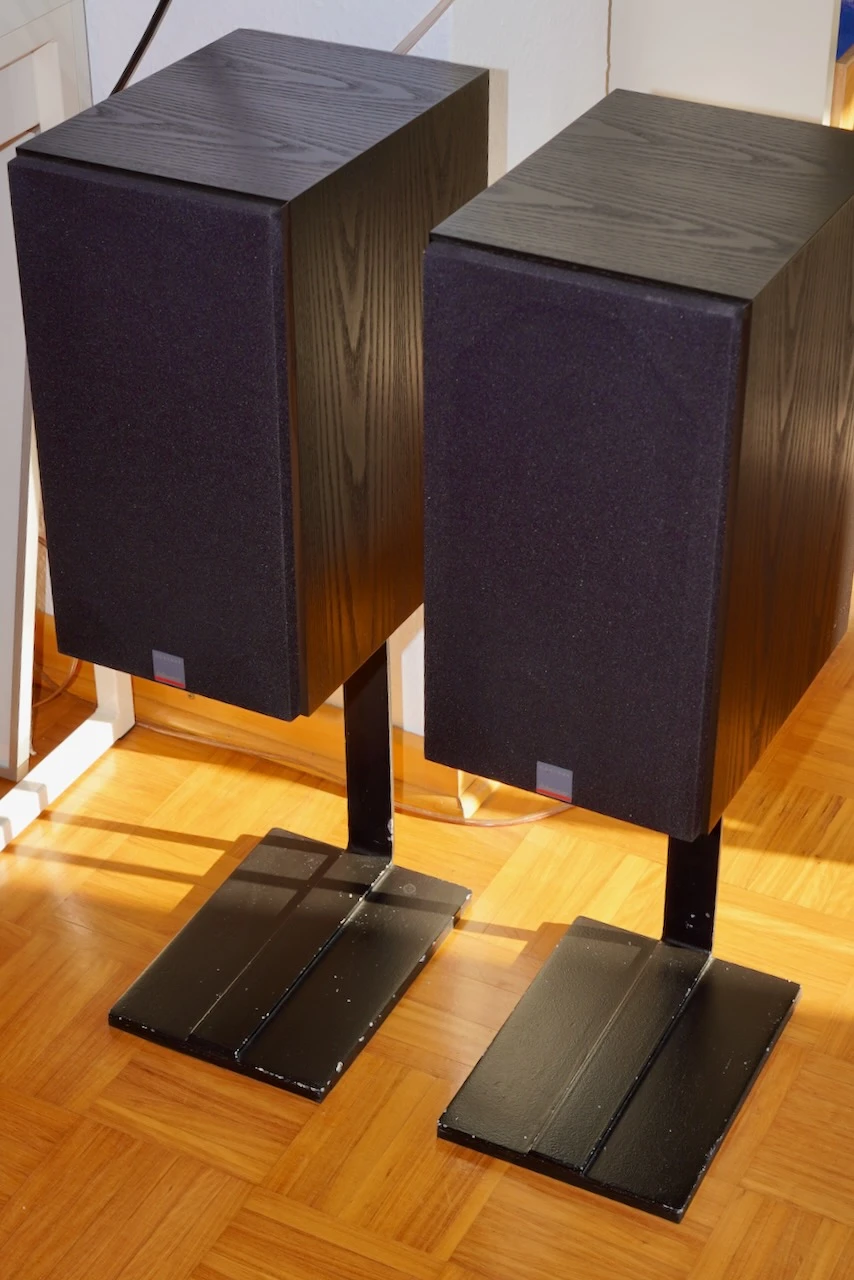 2 legendäre HiFi-Boxen auf Ständern (individuelle Anfertigung/körperschallisolierend), gebr., schwarz, je 150 W, best erhalten, NP= € 1.700/Paar, für zus. € 750, Erstbesitz, Originalfotos.