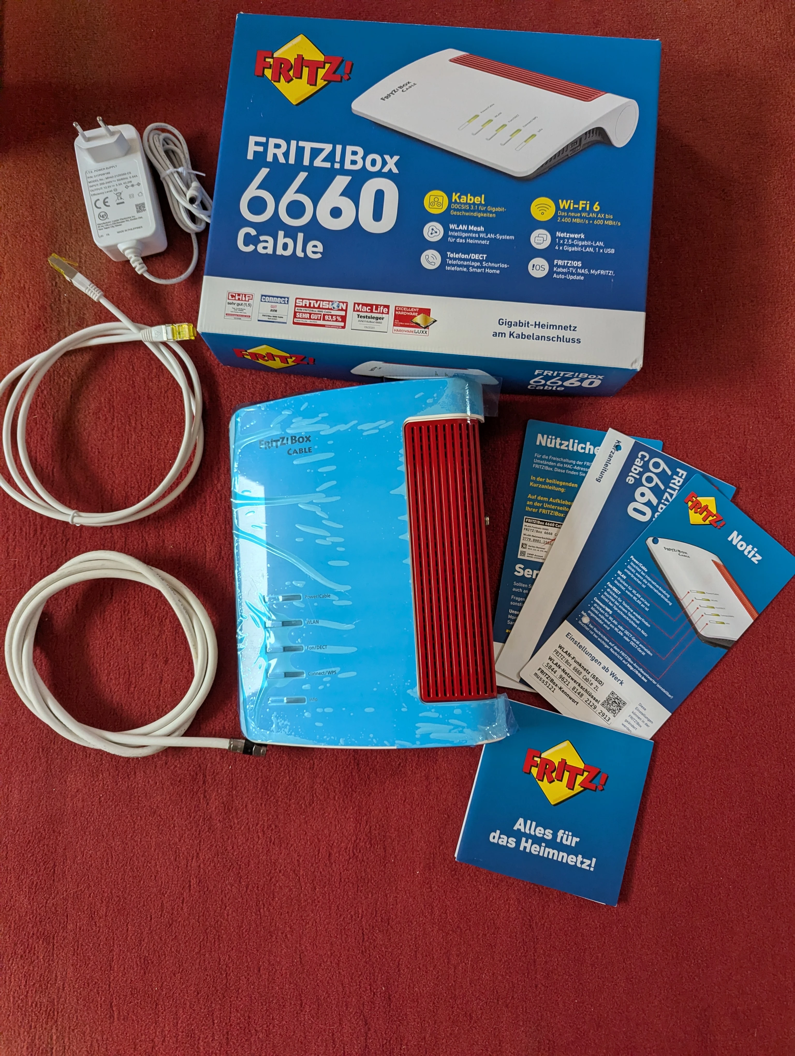 Diese Fritzbox 6660 möchte ich mit der originalen, blauen Schutzfolie verkaufen. Sie ist ohne Branding! und wird verkauft, weil ich einen Glasfaseranschluß nun habe.