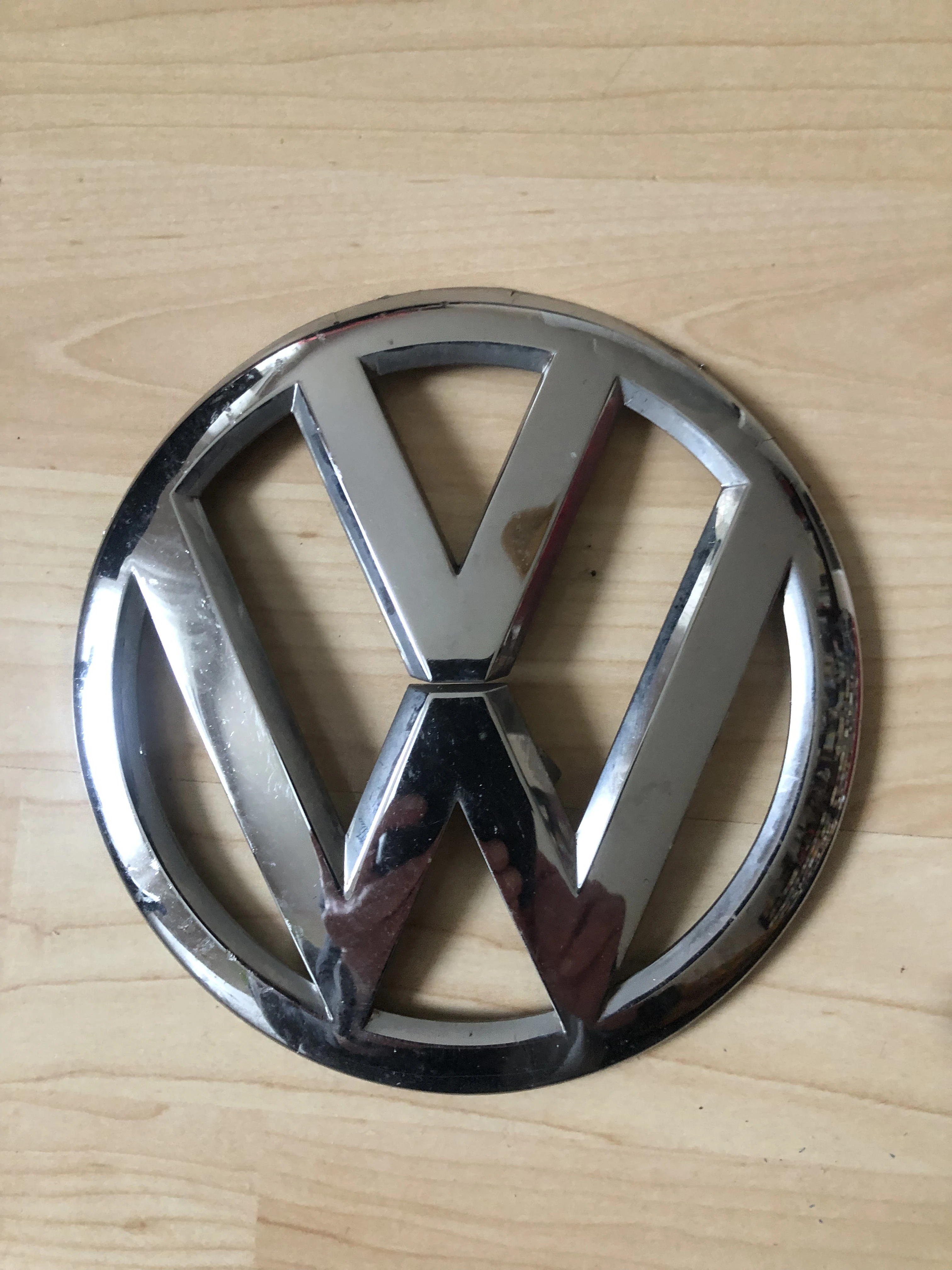 100% original VW-Emblem für die Heckklappe, Kunststoff, silberglänzend, Durchmesser: ca. 15,5 cm. Dieses tolle Abzeichen sucht jetzt einen liebevollen Neubesitzer und ist das perfekte Geschenk für einen VW-Fan. Privatverkauf, siehe Fotos, Tierfreier Nichtraucherhaushalt! jetzt nur 15€, Versand (€ 3,00) bei Kostenübernahme möglich
