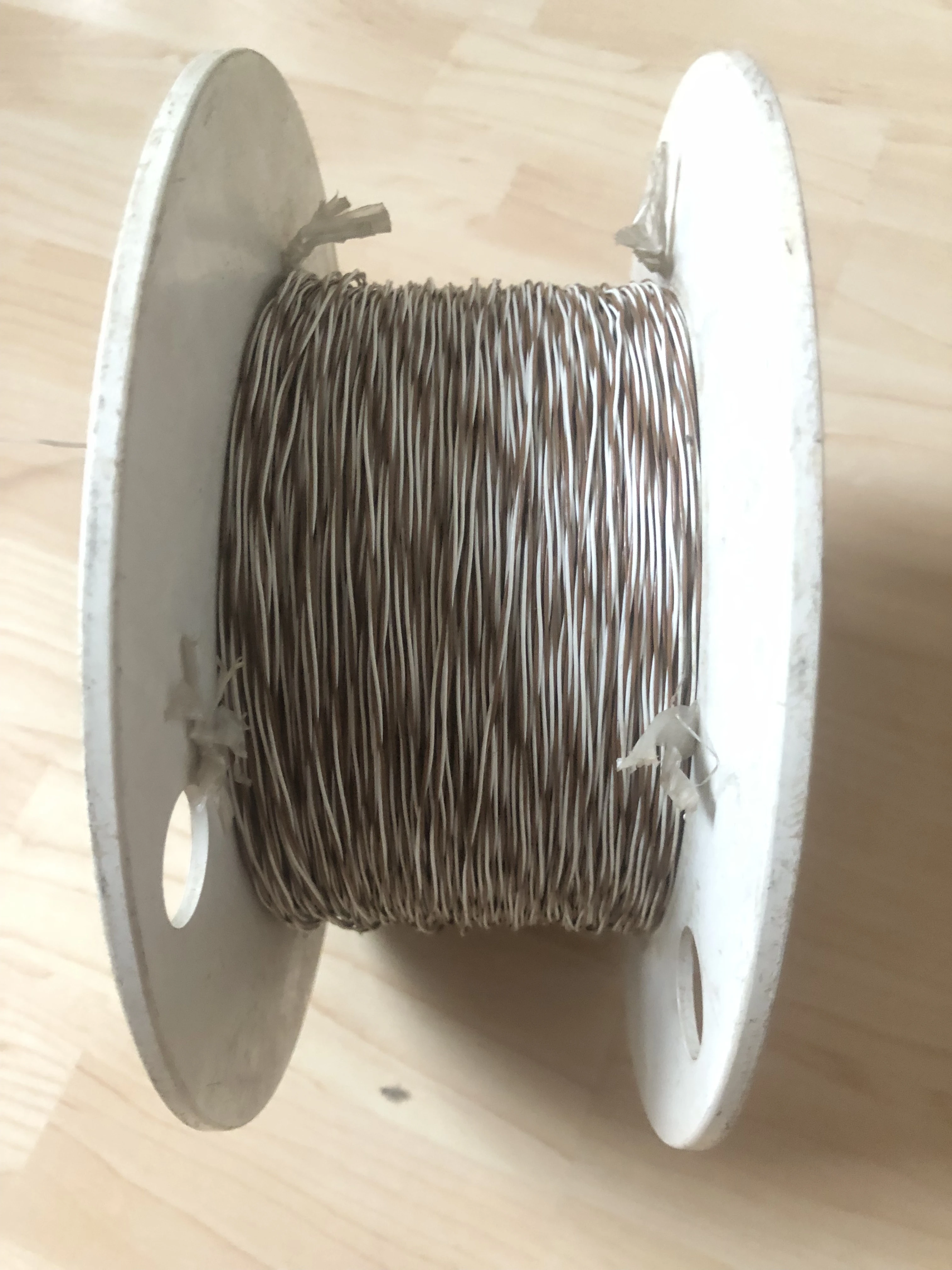 2 Leiter Rangier- Schalt- Klingeldraht verseilt, Isolierung aus Polyvinylchlorid (PVC), Außendurchmesser ca. 0.7 mm, weiß/braun, technisch einwandfreies und geprüftes Produkt. Schaltdraht zur Bestückung von Geräten, Baugruppen etc. in Fernmeldeanlagen für Sprach- und Signalübertragung. Schaltdrähte werden zum Beschalten von Vermittlungsschränken, Verstärker- und Wählergestellen, Messgeräten, Fernsprechvermittlungsstellen, Uhrenzentralen, Informationsverarbeitungsgeräten etc. verwendet. Sie sind für alle Arten von Betriebsstätten zugelassen und ideal für den Modellbau geeignet. Tierfreier Nichtraucherhaushalt! Privatverkauf, siehe Fotos, jetzt nur 50m für 12€ oder 250m für 29€, kleinere Längen auf Anfrage Versand ab (€ 3,00) bei Kostenübernahme möglich