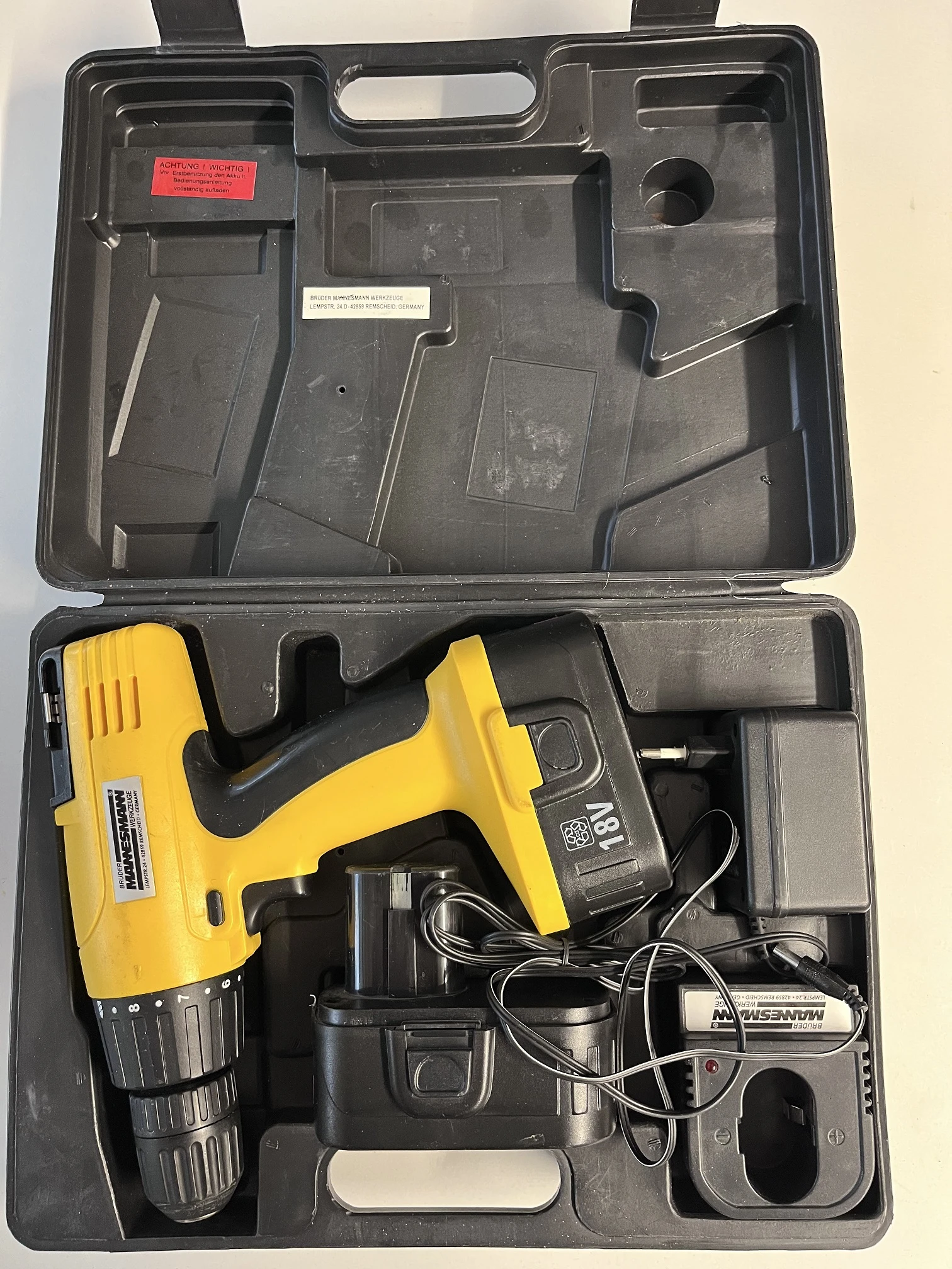 Verkaufe MANNESMANN Akku-Bohrschrauber mit 2 Akku-Packs und Ladegerät. Das Gerät ist voll funktionsfähig und wenig gebraucht.