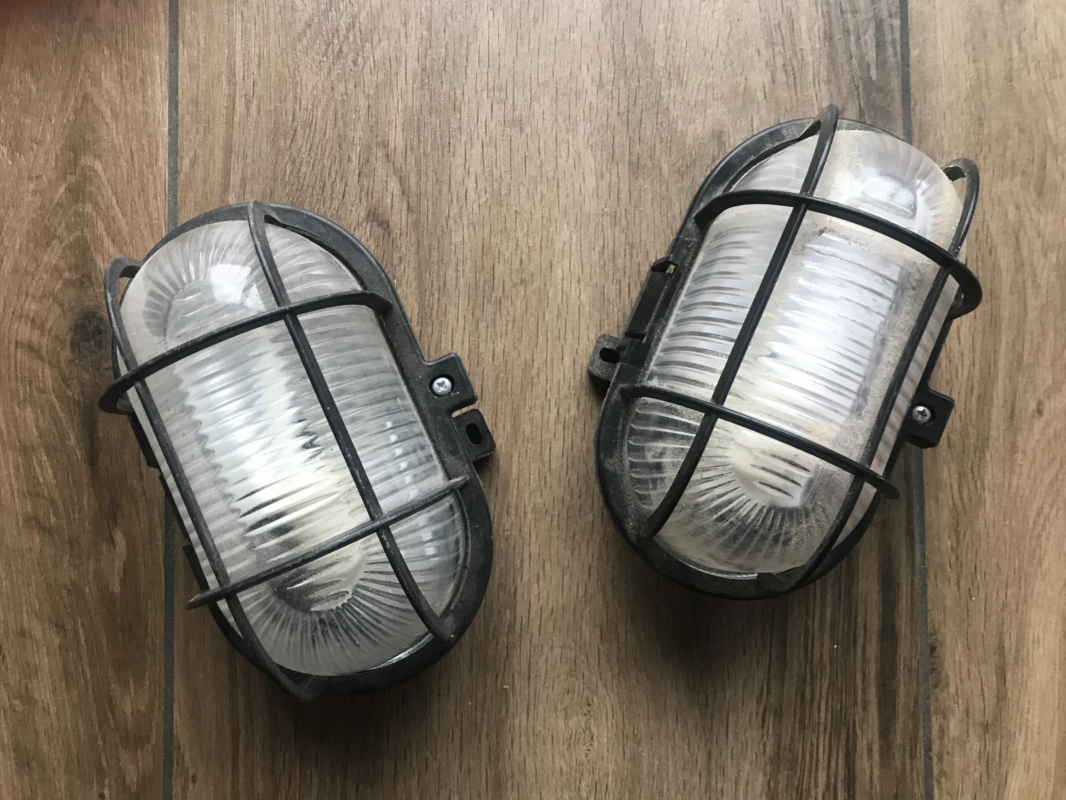 Biete zwei alte kult, retro Kellerleuchten an, lagen nur rum…..siehe Fotos Stück 6,00€ zus. 10,00€