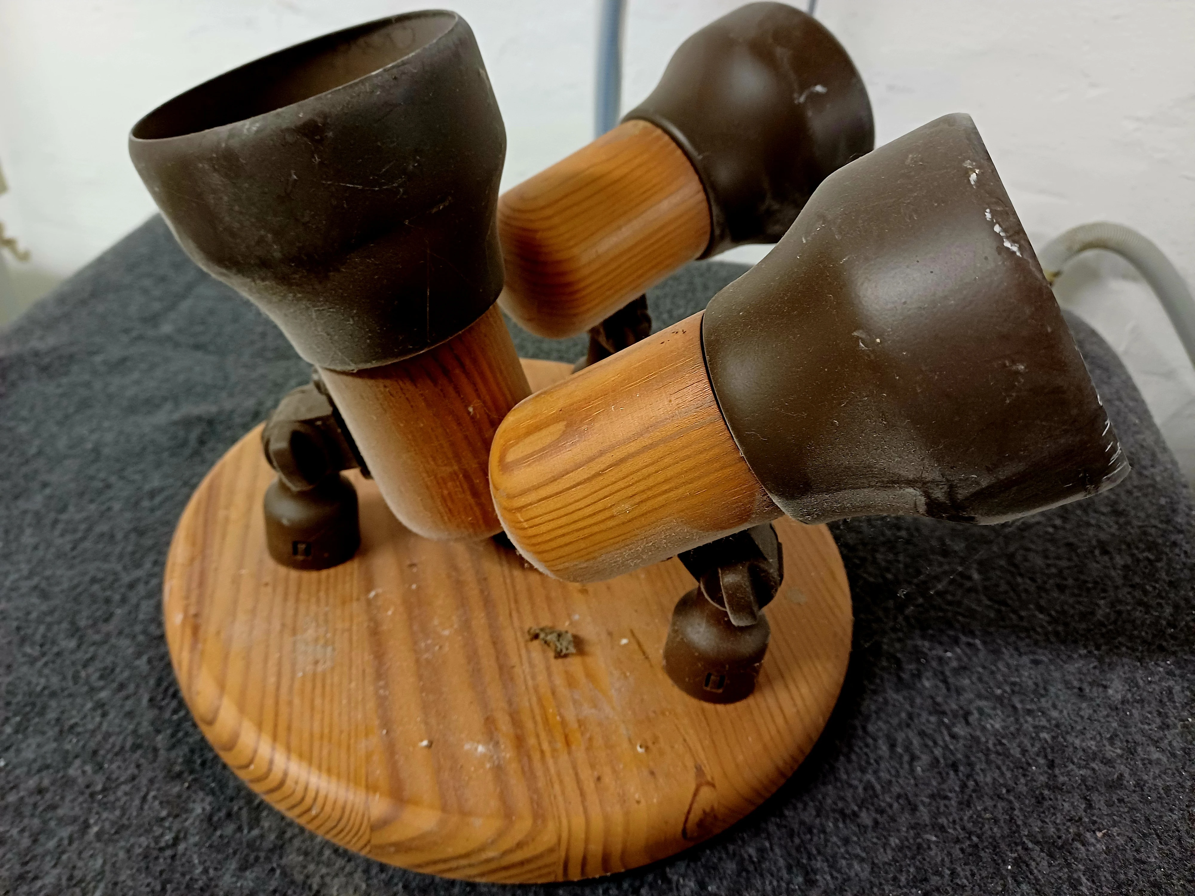 Vintage Holz Deckenleuchte mit 3 Strahler.