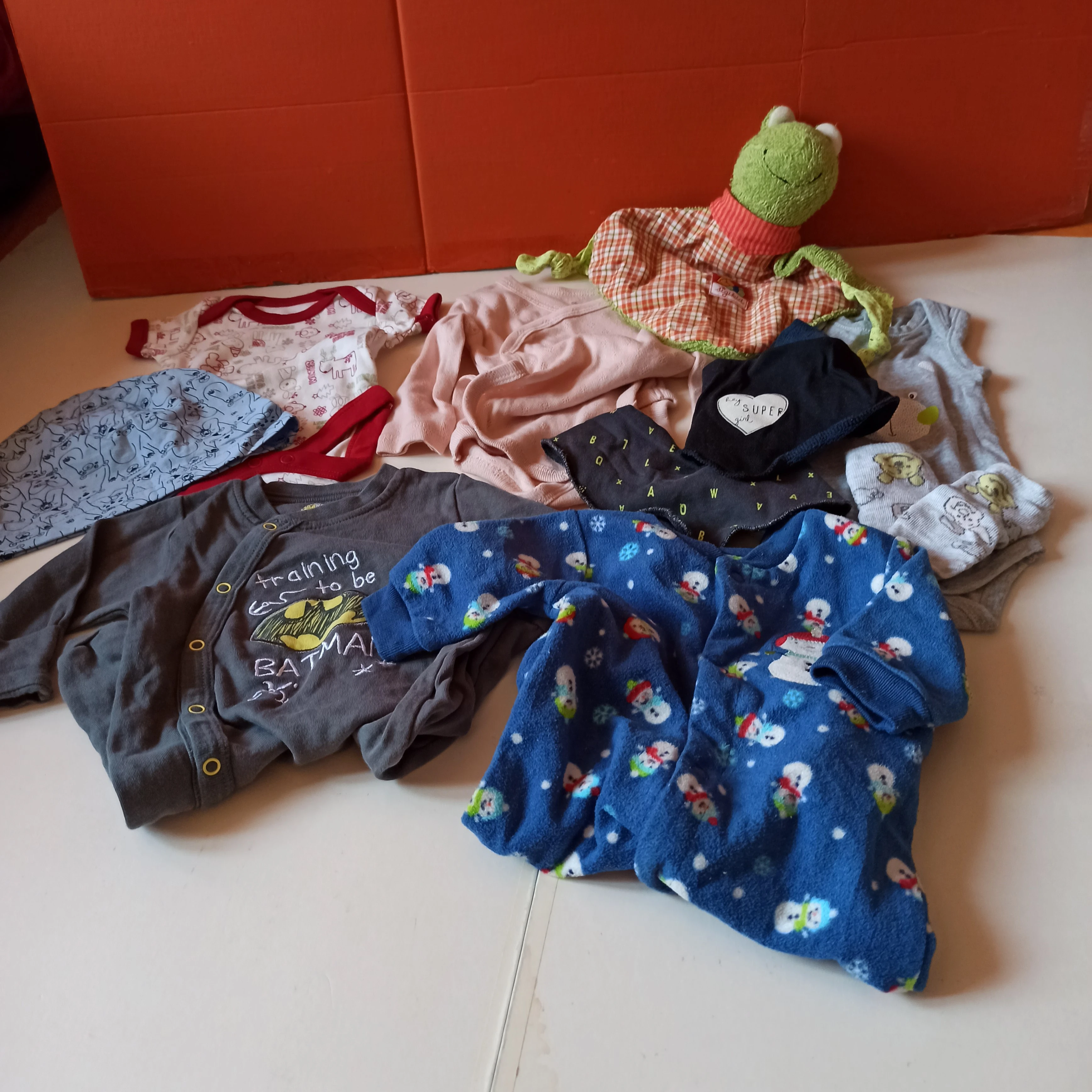 2.ein Bekleidungspaket mit verschiedenen Kleidungsstücken ab Größe 80, inklusive einem Werder Lätzchen.