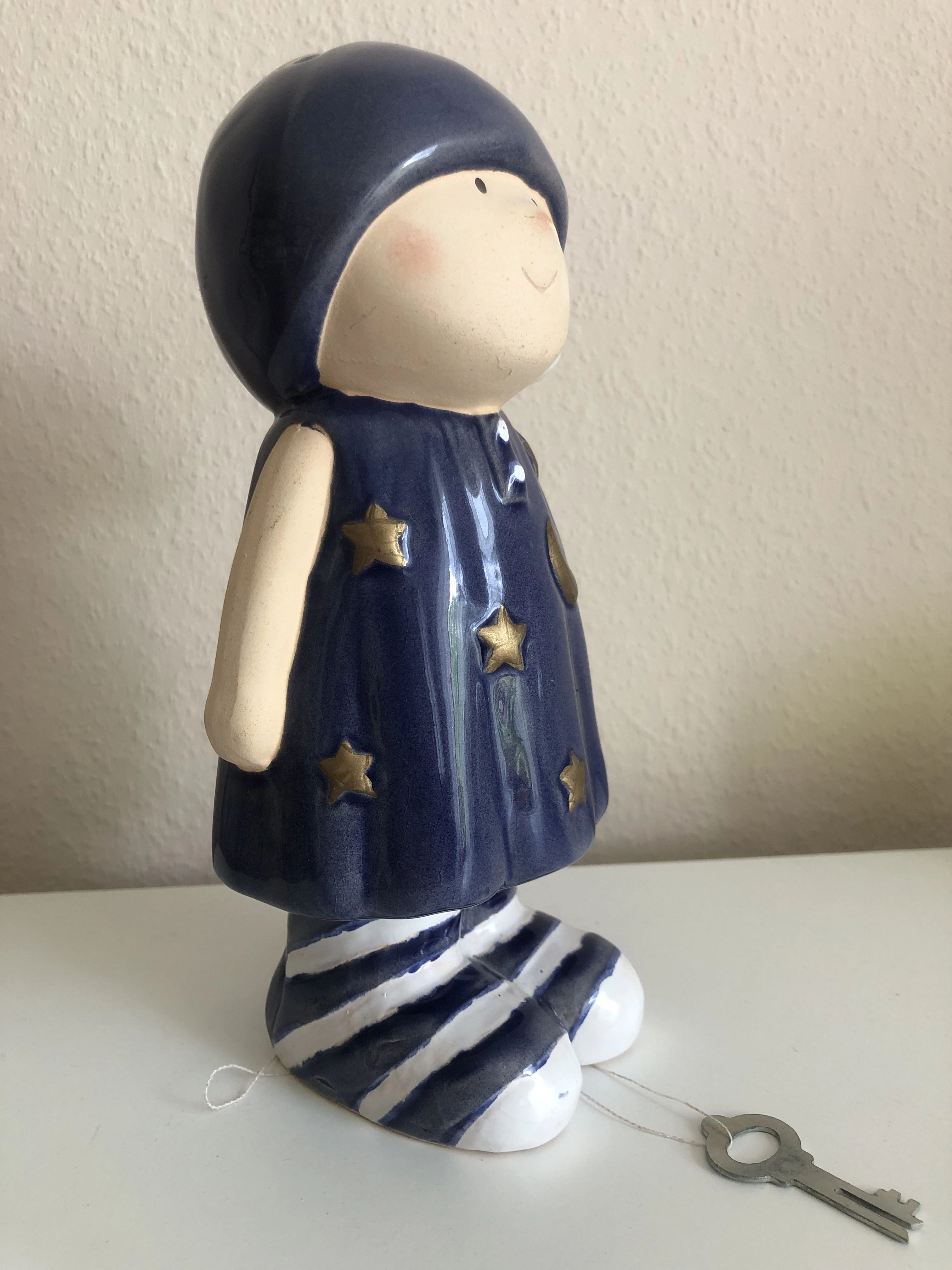 Der Traumwichtel bewacht Deine Träume, also schlaf ruhig ein und träume süß. Eine persönliche Spardose aus Keramik, zum Ansparen von Wünschen mit Schlüssel und Schloss. Maße ca. H 21 x D 9 cm. Diese tolle Geschenkidee für die Kleinen, ist bei jeder Gelegenheit das optimale Geschenk, zum Geburtstag oder als kleine Aufmerksamkeit. Unbeschädigter Artikel in einem sehr guten neuwertigen Zustand, Privatverkauf, siehe Fotos, jetzt nur 10€, Versand (€ 4,00) bei Kostenübernahme möglich