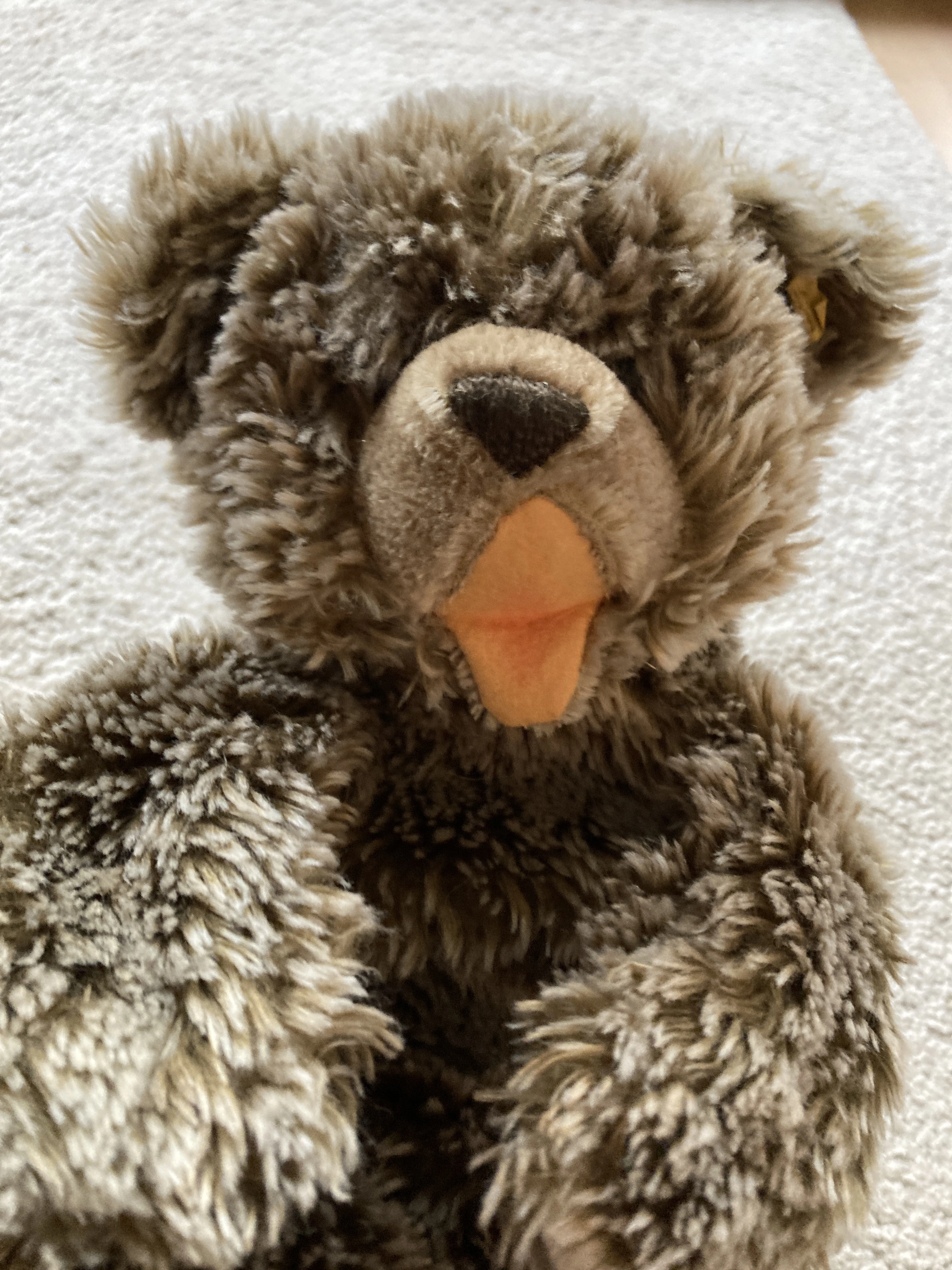 ich biete hier eine Bären-Handpuppe von Steiff an. Die Hand kann in die beiden Bärenarme gesteckt werden, der Mund kann nicht bewegt werden. Das Bärchen ist aus den 70er Jahren. Fell ist aber noch komplett vorhanden genauso wie Fahne und Knopf im Ohr.