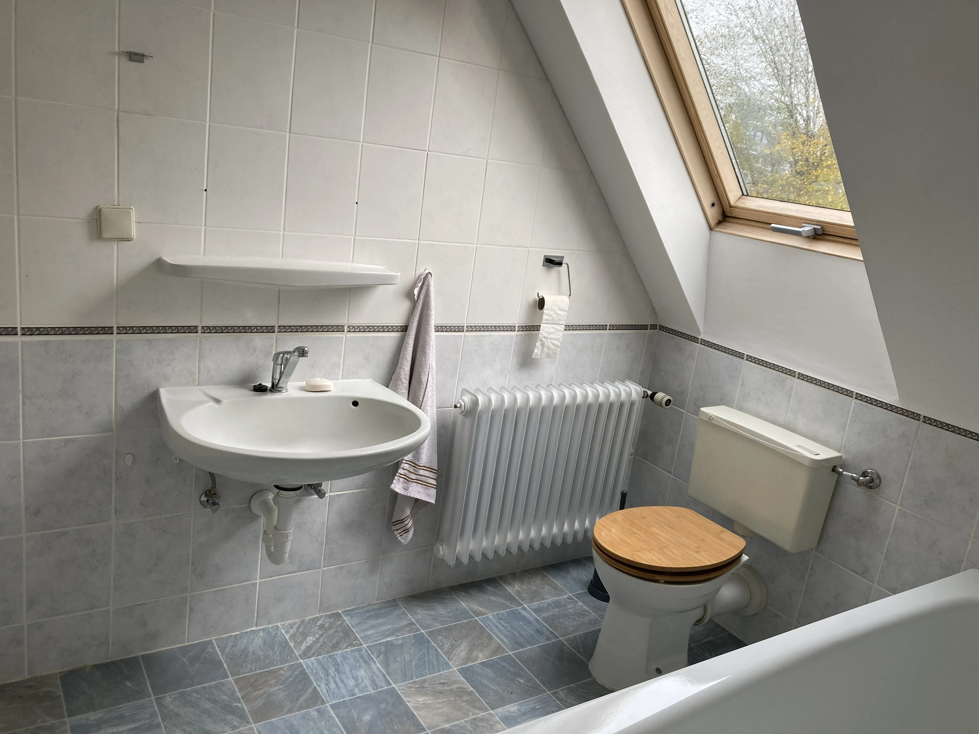 Die helle Wohnung (98 qm) erstreckt sich über das Ober- und Dachgeschoss eines Reihenmittelhauses von 1923. Neben einem großen Wohn- und Esszimmer gibt es vier weitere Wohnräume, eine große Küche mit Gasherd, Backofen, Spüle, Kühlschrank und Einbauschränken, einen Balkon und zwei Tageslichtbäder mit Badewannen. Eins der Badezimmer wird aktuell vollständig saniert. In fast allen Zimmern ist Parkettboden verlegt. Zudem werden ein Abstellraum, ein ausgebauter Spitzboden und ein geräumiger Kellerraum mitvermietet.