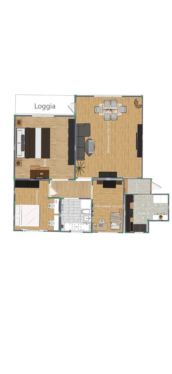 Die Wohnungsskizze ist nur ein Beispiel und dient nur für die Raumaufteilung!!! Ist nicht möbliert!!!