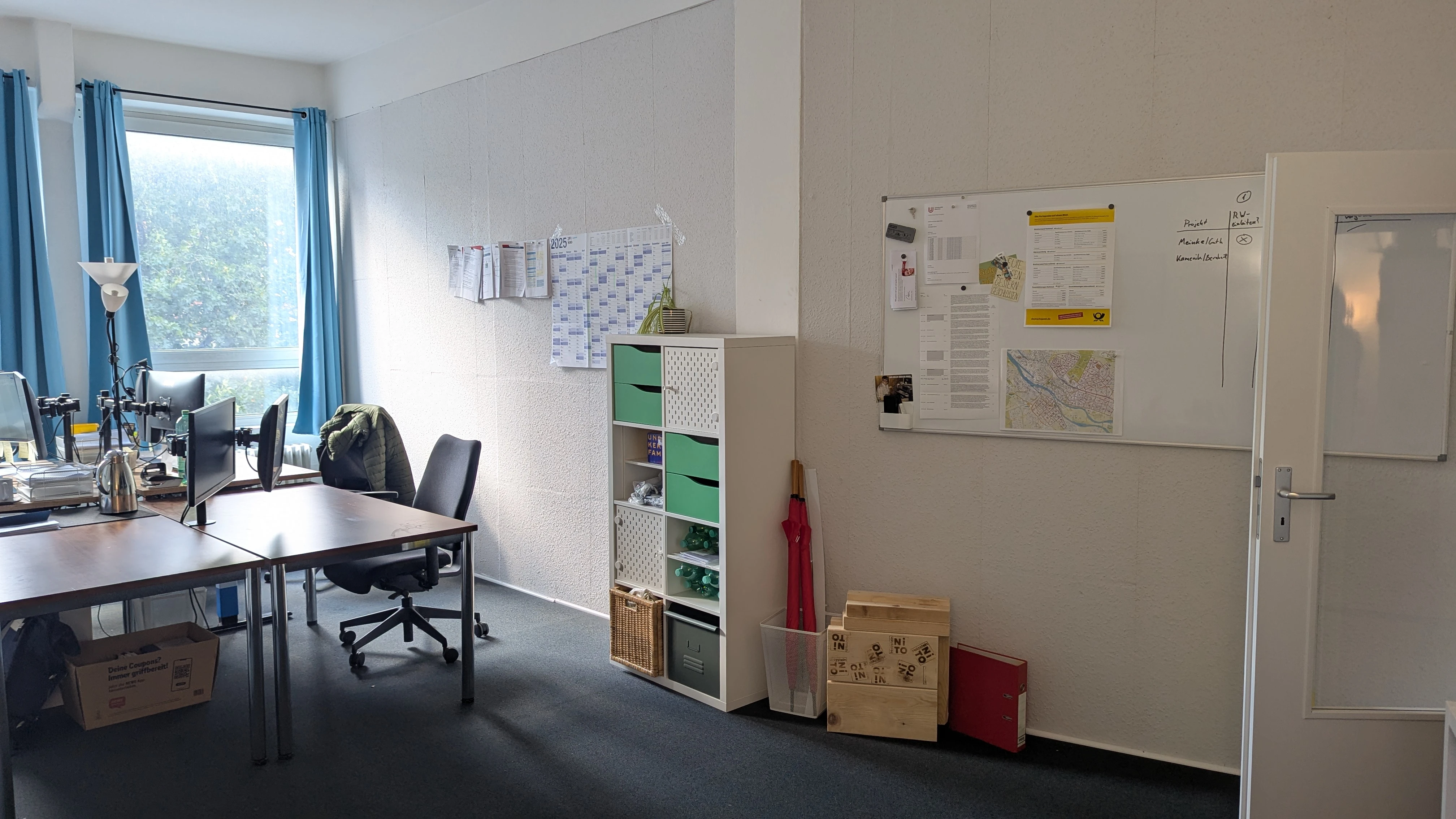 Die Gemeinschaftsräume teilt ihr euch mit einem gemeinnützigen Verein voller junger, netter Menschen. Das Büro befindet sich im 2. OG ohne Fahrstuhl und ist entsprechend nicht barrierearm. Bei Interesse an untermiete@einsteigen.jetzt