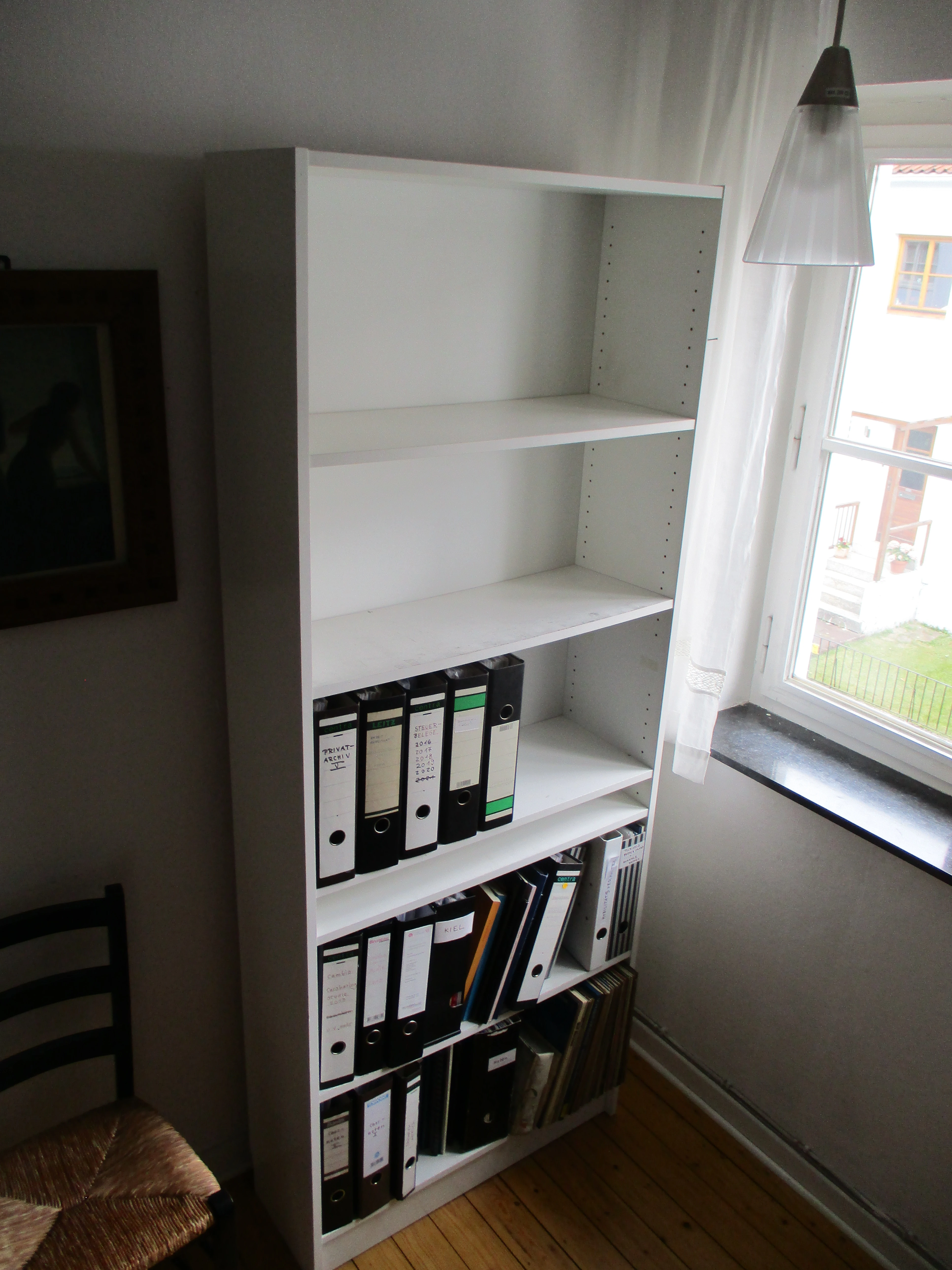 Das Regal ist 2 m hoch, 80 cm breit und 30 cm tief. Sehr stabil.